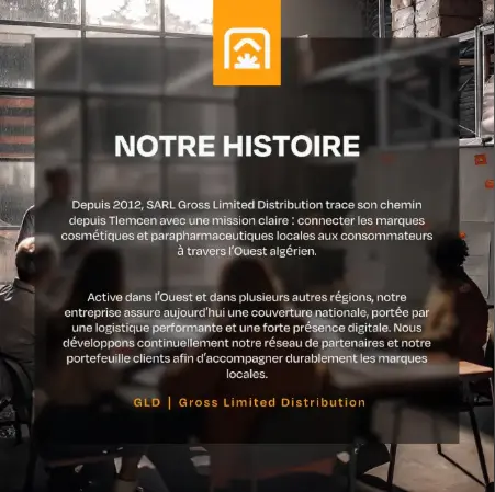 SARL GLD (Gross Limited Distribution) est une entreprise algérienne reconnue, conforme aux normes légales, spécialisée dans la distribution exclusive de produits cosmétiques et parapharmaceutiques. Notre organisation structurée assure une connexion efficace entre les marques locales et un large réseau de clients, appuyée par une logistique intégrée et une présence digitale stratégique.