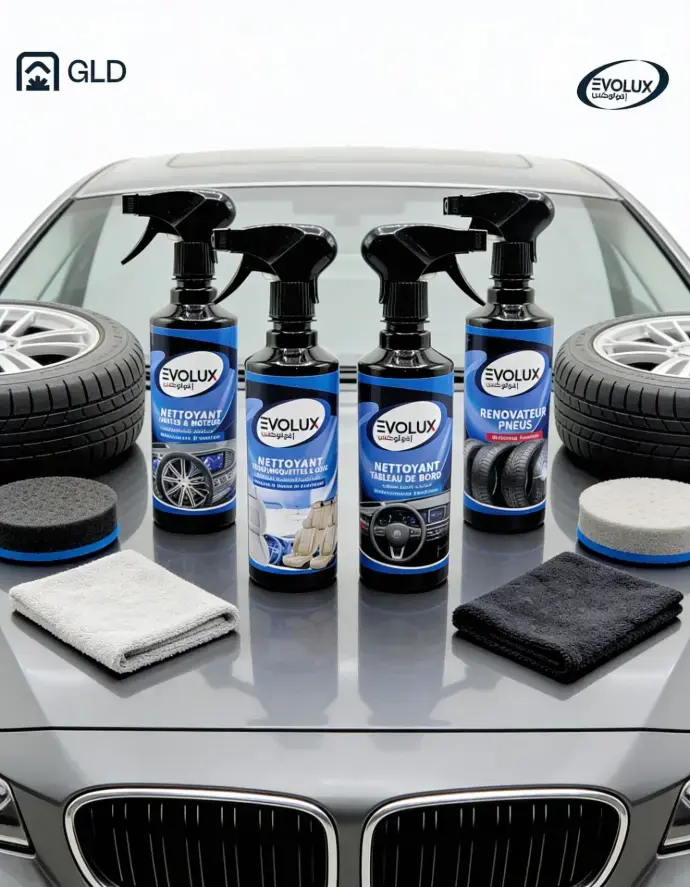 a gamme EVOLUX a été conçue pour offrir une solution complète de nettoyage, d’entretien et de protection automobile. Chaque produit est développé pour répondre aux exigences des véhicules modernes, en respectant les matériaux sensibles tout en garantissant un résultat visible, propre et professionnel.